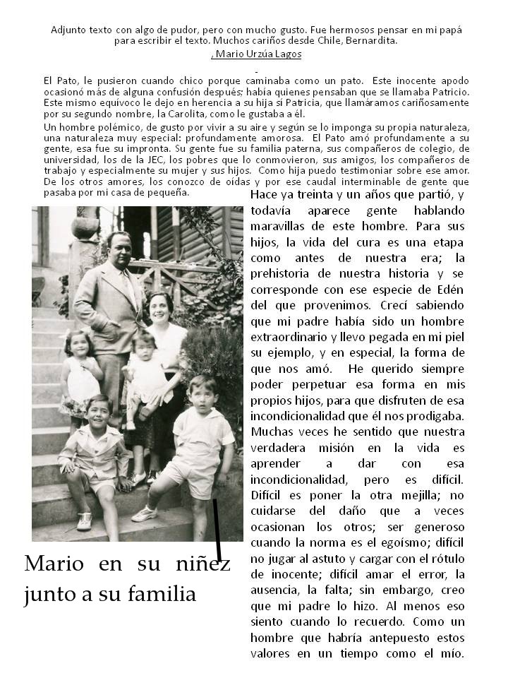 Este era el último casamiento bendecido por MARIO, luego en esa dinámica de amor que generaba su existencia, en el corto plazo de un año, conocimos a Anita, nació Bernardita y la vida se fue tejiendo de evento en evento, en donde destaca la presencia constante de Alfonso Baeza, que representaba el vínculo con la Iglesia de Cristo que siempre amó Mario.