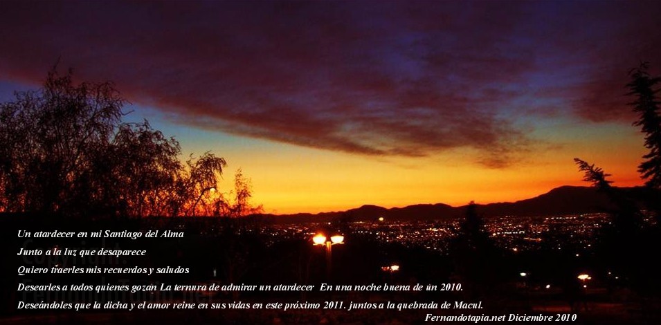 Muchas veces no estamos consciente como aquel día comienza hasta que el reloj ha cantado su alarma para despertarnos, la mañana suele ser por otra parte silenciosa, suave, tiernas como una caricias de luz transformante; nace de una aurora imposible de retenerla por un segundo, avanza con su intensidad como un mensaje de vida, como un sueño que abandona su pereza para revelar su comienzo, como los colores de un sol ardiente que han de ser el encuentro a nuestra realidad cotidiana; Yo me encontré sentado en un balcón por horas largas y silenciosas esperando la llegada de la luz a mi Santiago, solo, con los sentidos pegados a mi vista, para observar la plenitud de mi ciudad perdida, solo, encontrando aquellas cosas que se reflejaban en mi alma, en mi conciencia, en mis pensamientos como aquel momento de luz cambiante, cada segundo como una nueva expresión de ausencia, de aquellas cosas que no se pueden retener, como la vida misma y que pasa frente a nosotros como un desfile inagotable que forma esa entidad que le llamamos nuestra existencia.