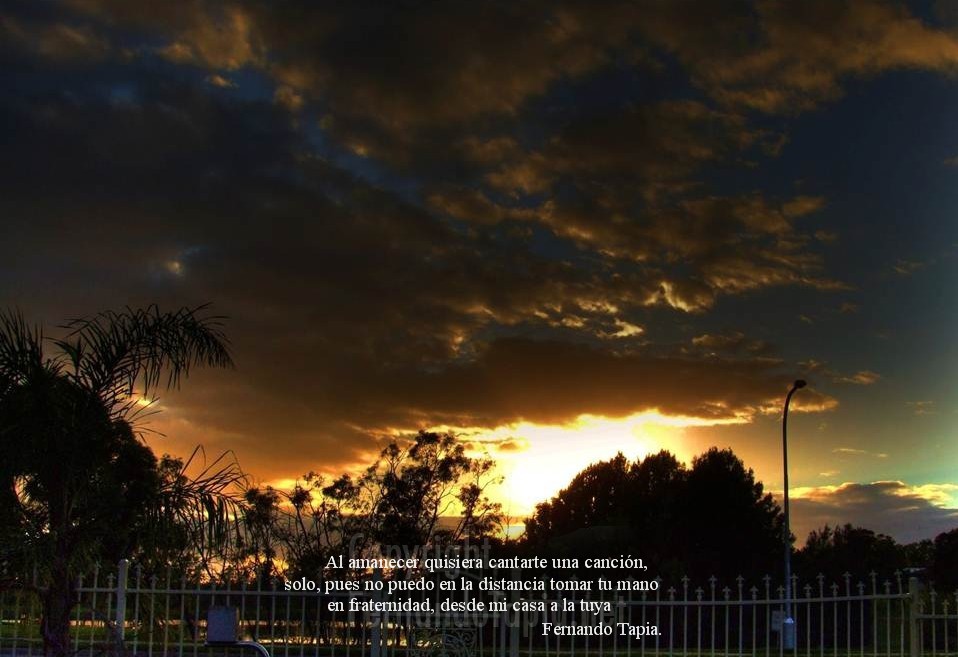 At sunrise I wish to sing you a song, just, because in the distance I cannot touch your hand in fraternity,